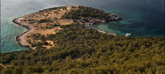 The beautiful small island of Agistri is located at less than 30 minutes by boat from Aegina. The islet Moni is 10 minutes by caique across Aegina’s Perdika village.