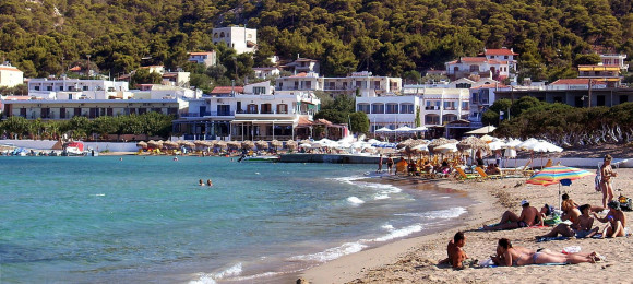 Very popular, sandy and organized beach, with many facilities. Its shallow waters make it family friendly.