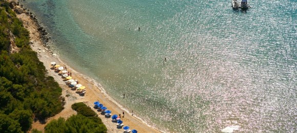 A large, popular and fully organized beach, with golden sand, shallow waters, a tavern and water sports facilities. If you fancy a neighboring, more low-key option, the smaller, pebbly beach of Milia, hidden in a lovely pine-lush bay, is suitable for you.