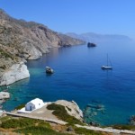 One of the most beautiful beaches on Amorgos. It’s worth descending a path in order to reach it (also, the views from here are fantastic). It’s surrounded by rocks and features sand, pebbles and crystal blue waters, as well as two underwater caves.