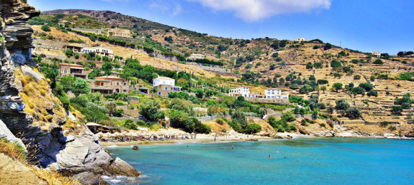 Actually, it’s two beaches: Front and Back Gialia. The former is pebbly, with a fish tavern; the latter is sandy and favored by young people. Both are organized.