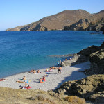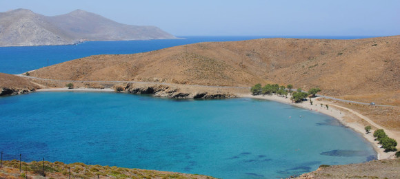 A very scenic spot, located at the narrow piece of land that divides the island into two parts. It is actually two sandy beaches (Mikro/small and Megalo/big Steno), with shallow waters, a few tamarisk trees and amenities available at the village of the same name.