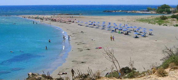 This organized beautiful sandy beach is ideal for swimming and relaxing. The historic, popular settlement of the same name offers many amenities, sightseeing (a great Venetian castle) and also a famous legend – in May, the procession of “drosoulites” (aka the ghosts of Cretan soldiers killed by the Turks in 1828) crosses the village and disappears into the sea.