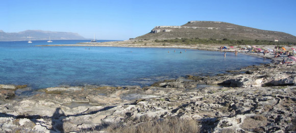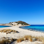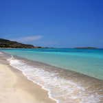 Amazing waters, white sand and rocks adorn this quiet, wind protected small bay.