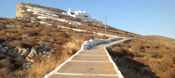 From Pounta square in Chora you can walk a cobblestone path for 15 minutes towards the impressive Church of Panagia.