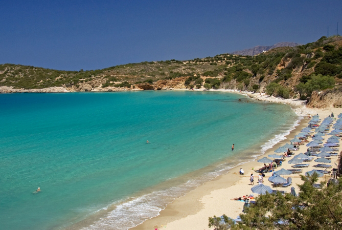 One of the most gorgeous beaches in Crete, among the top of all the Greek islands. The exotic Vai resembles an oasis with its large palm tree forest (the only of its kind in Europe) and fine golden sand.