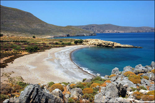 An isolated, pristine beach with pebbles and crystal clear waters accessible only by boat or through the beautiful gorge of Chochlakia (1.5 hours hiking).