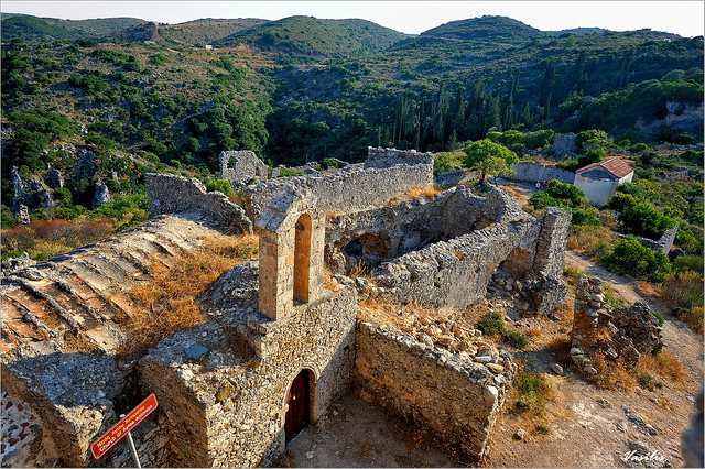 The remains of the island’s Byzantine capital, which include the castle and churches with frescoes.