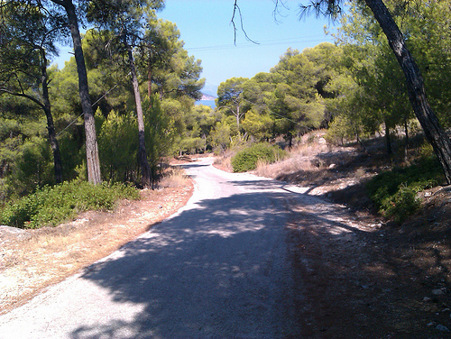 Walk from Skala to Chalkiada beach enjoying a magnificent tree covered path near the sea