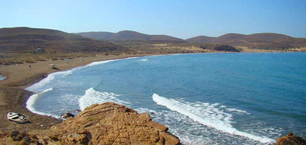 Reddish sand and crystalline waters make this beach one of the most beautiful at the area of Mantamados.