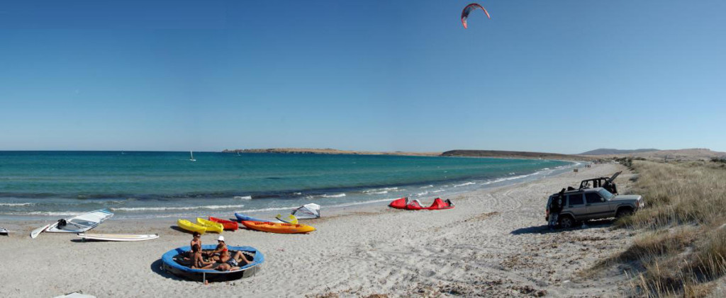 A large sandy beach with sun beds, umbrellas and a beach bar, ideal to swim and relax – it is close to the island’s area of ammothines (sand dunes).