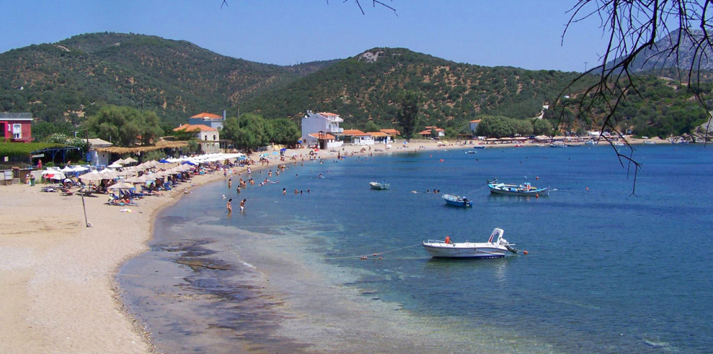 Among the island’s best beaches, it is located at the village of the same name.