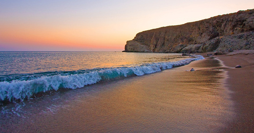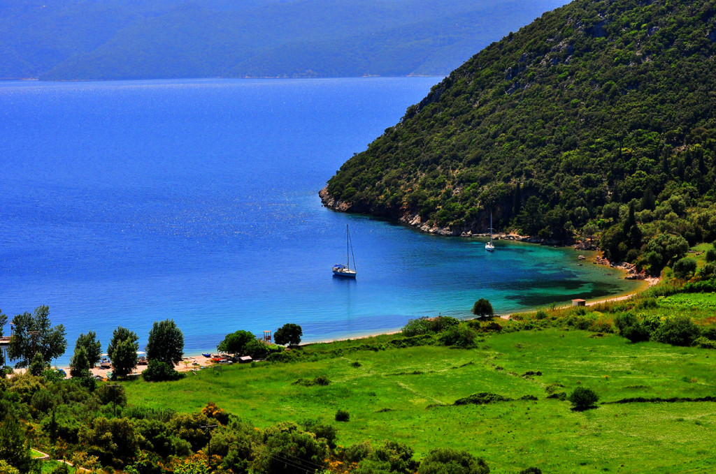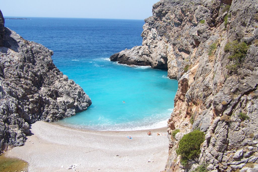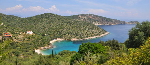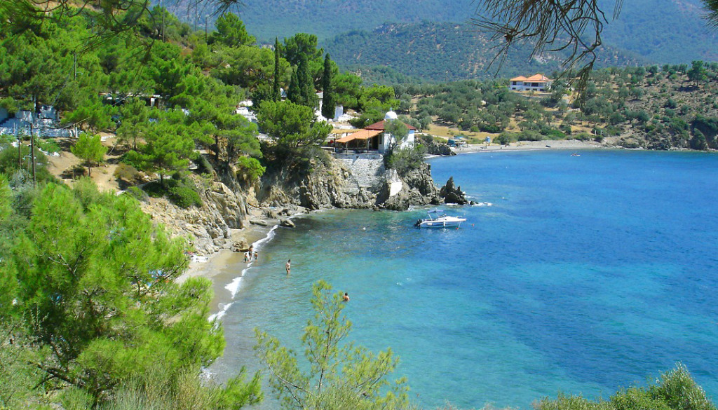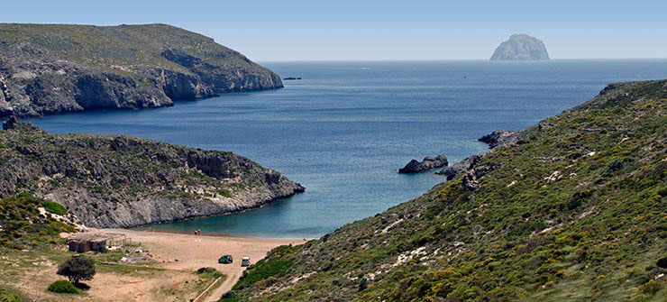 A small sandy bay with magical waters and views to the islet of Chitra (Avgo).