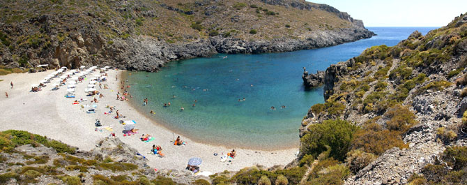 Isolated, small and pristine, this pebbly and sandy beach is difficult to reach, but swimmers and snorkeling fans will love it. It requires 15 min of hiking and rappelling down the steep rocks.