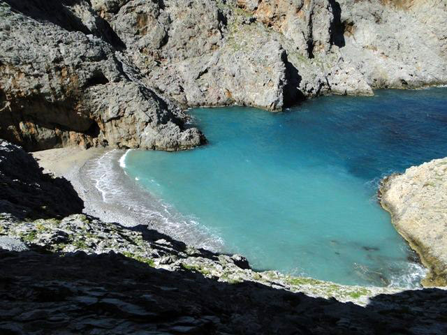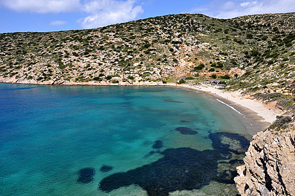 If you’re looking for a secluded pebbly beach to enjoy peace and privacy, this is the place. It takes half an hour of rough trekking from the village of Tholaria.