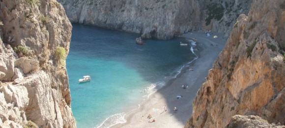 Gorgeous and serene, this enclosed pebbly beach is located at the end of the beautiful small gorge of Agiofarago. You can reach it either by boat or by crossing the gorge (highly recommended – less than one hour on foot). Needless to say it’s not organized.