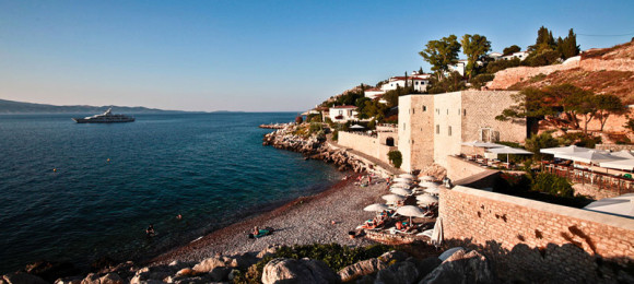 Tiny, pebbly and organized beach, located at the village of the same name.