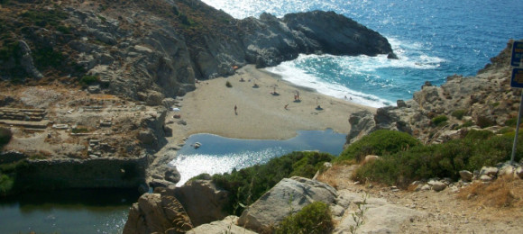Among the most well-known beaches of all the Greek islands, it is located in beautiful scenery, at the mouth of river Halaris that crosses the sandy seashore and empties into the sea. It is nudists’ favorite and not organized. In the area there are taverns where you can enjoy your meal with a view (especially in sunset) or check out the remains of the nearby temple of Artemis Tavropolion.