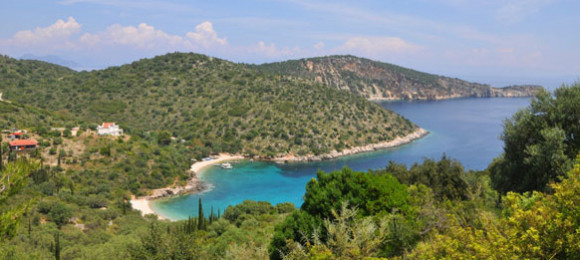 A small pebbly beach with clear waters and olive trees. It is quiet, not organized and ideal for snorkeling.