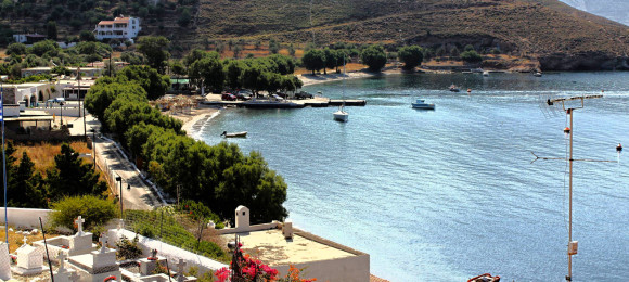 Lovely waters and calm atmosphere, an ideal beach for swimming and also windsurfing. Situated at Emporios village.