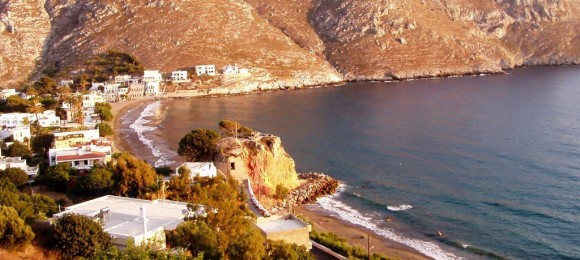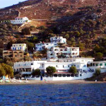 Sandy, long beach with a few tavernas, bars and shops, set at the tourist resort of Panormos.