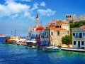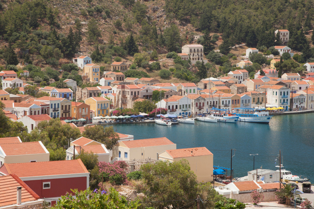 : The Blue Cave (also known as Cave of Parasta or Fokiali): A must experience in one of the most impressive underwater caves found in the Greek islands and the Mediterranean. Only a small boat can take you there, as the cave’s entrance is so confined you’ll practically have to bend down or swim in it. The stalactites and stalagmites, the iridescent light, the water reflections and various colors create a truly unique spectacle. The cave is also home for many animal species, including the monk seal. 9.0 : The Knights of St John named the island Kastellorizo (Castello Rosso) because of the red cliffs above the town – at that very spot they built in the 14th c a prestigious castle, whose remains can be visited today. At the foot of the castle, you can also see the island’s landmark monument: The preserved 4th c BD Lycian tomb, carved in a rock (its name comes from the inhabitants of Minor Asia, also called Lycians). 8.0 : Located at the southwest of Kastellorizo, it is famous for its sole inhabitant, the so-called “Lady of Ro” aka Mrs Despina Achladioti. She used to raise the Greek flag every day on this tiny piece of land for many decades, until she passed away in 1982. A memorial dedicated to her is built on the islet. 8.0 : It takes 401 steps to reach it, but the views from this fascinating site are absolutely rewarding. Surrounded by huge stones, this deserted monastery resembles a fortress and hosts a catacomb, among other things. 8.0 : Fresh fish and sea food is the island’s gastronomic trademark. You can also try specialties such as kid goat meat stuffed with bread crumbs, pilafi (rice) and revithokeftedes (balls made with chick peas). Also, a variety of sweets like katoumari (sweet pie), strava (type of baklavas) and chalvas (made with semolina). 8.0 : This is the island’s top ancient monument - the ancient capital that features the remains of a 3rd c BC Doric acropolis, cisterns, buildings, three churches, plus panoramic views. At the same area (Limenari) you can see the relics of cyclopean walls. 7.0 : The island’s two major feasts take place on July 20th (to honor Prophet Elijah) and on May 21st at the Cathedral of Agios Konstantinos and Agia Eleni. Moreover, on the 13th of September Kastellorizo celebrates the Day of Independence. 7.0 : The famous Turkish cosmopolitan resort with its well-known bazaar is merely half an hour from Kastellorizo by boat. It’s one of the most popular excursions and surely worth a visit. 7.0