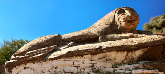 A trademark of Ioulida, it’s a 6th century BC sculpture carved on a rock that bears an enigmatic smile. According to the myth, this lion chased away the island’s former inhabitants, the Nymphs.
