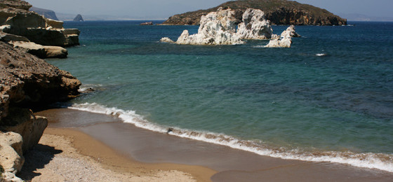 Three more coves in a row, with sand and a few pebbles, accessible via a dirt road. Enjoy swimming and relaxing, plus some ancient sightseeing at Ellinika and a lovely sunset at Mavrospilia, gazing a group of rocks that emerge from the sea.