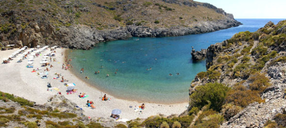 Crystalline blue-green waters, pebbles and a few amenities are the main characteristics of this beach. Note that it is wind-protected and it can get crowded.