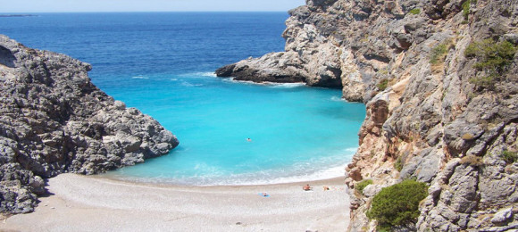 Isolated, small and pristine, this pebbly and sandy beach is difficult to reach, but swimmers and snorkeling fans will love it. It requires 15 min of hiking and rappelling down the steep rocks.