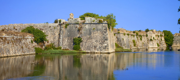 The impressive fortress that bears Lefkada’s Venetian name “welcomes” visitors at the island’s entrance.