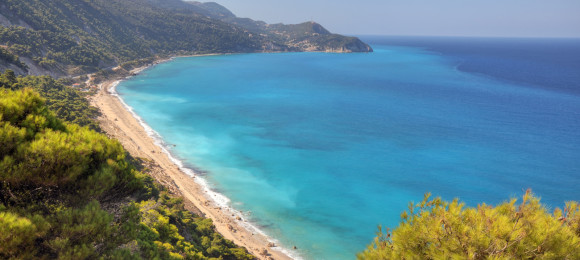 Another typical Lefkada long and sandy beach. Very impressive scenery, lots of pines, partly organized.