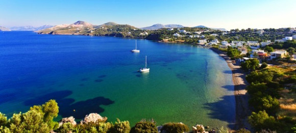 A peaceful, long seashore with dark colored sand, crystal blue shallow waters, tamarisk trees and only the basic amenities. Nearby you can also swim in the beaches of Drymonas and Kokkali.