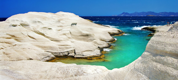 Milos, the island of Venus, has nothing to be jealous of Santorini, its other volcanic neighbor. The most valuable asset of Milos is its 70 or so beaches, some of which are among the most gorgeous of all Greek islands. Breathtaking, dramatic landscapes with colorful, bizarre rock formations and hot springs –all owed to its volcanic nature- are also a trademark. The island has a long mining tradition and used to be a commercial center of obsidian in ancient times, from which survive a number of interesting archaeological sites to see. Milos is also ideal to walk or drive, for further explorations.