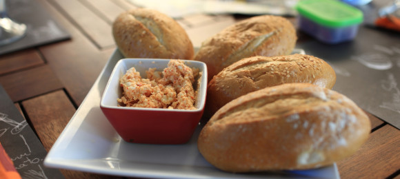 Soft spicy cheese “kopanisti”, louza (traditional type of cooked pork meat) and amygdalota (almond sweets or marzipans).