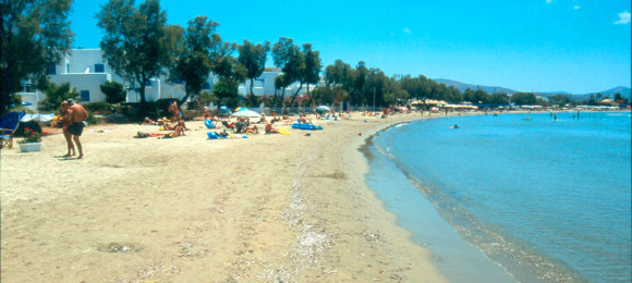 Sandy and family friendly, it’s next to Naxos’ Chora and offers all kinds of facilities.