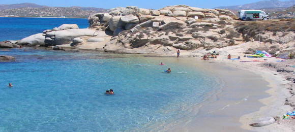 It is actually two beaches split by a huge rock, ideal for windsurfing and kite surfing.
