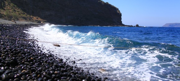 One of the most famed beaches of the island, mainly because of its impressive big black volcanic pebbles and crystal blue waters. It’s at walking distance from Mandraki.