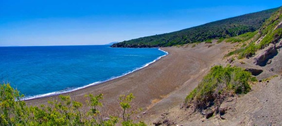 For many, it’s the most beautiful beach on Nisyros. It has dark thick sand, dunes, no shade nor facilities, while it’s also nudist friendly and free campers’ favorite. You have to walk a rough path for 10 minutes in order to reach it.