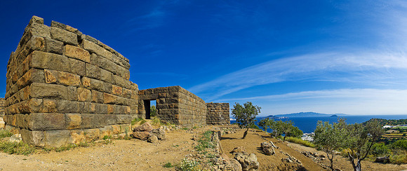 The ancient acropolis of Nisyros is also situated at the area of Mandraki, where the island’s ancient capital used to be. It is one of the best preserved fortifications found in the Aegean, with impressive volcanic rock cyclopean walls. From here the views are absolutely superb.