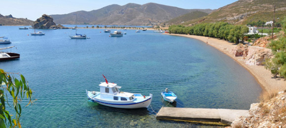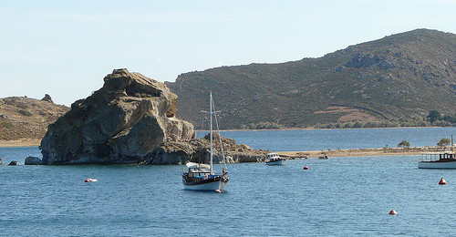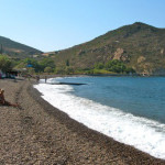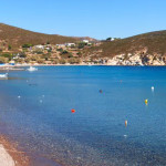 From Grikos beach you can partly see the island’s trademark “Petra of Kalikatsou” – an imposing rock that seems to be emerging from the sea (and also a former hermits’ shelter), where the fully organized beach of Petra is located.