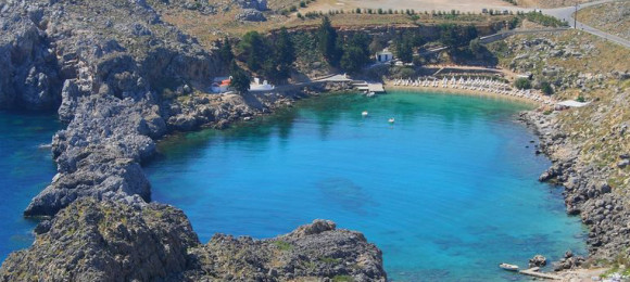 A wind-protected picturesque sandy bay surrounded by rocks; it truly resembles a swimming pool if you see it from above. It is organized and also features the chapel of Agios Pavlos.