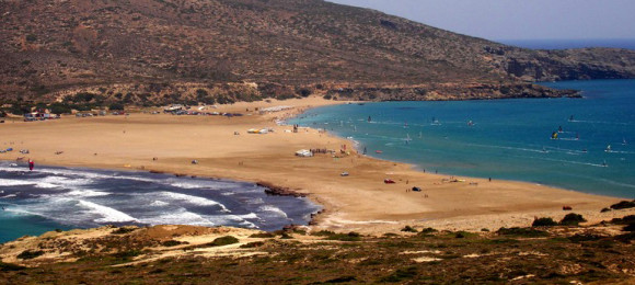 Located at the southernmost part of Rhodes, it is actually an island joined with Rhodes via a strip of sand. Prasonisi consists of two sandy coves, but swimming comes second here, as the place is one of the best windsurfing spots in Europe. Indeed, every year it attracts numerous windsurfers from all over the world.