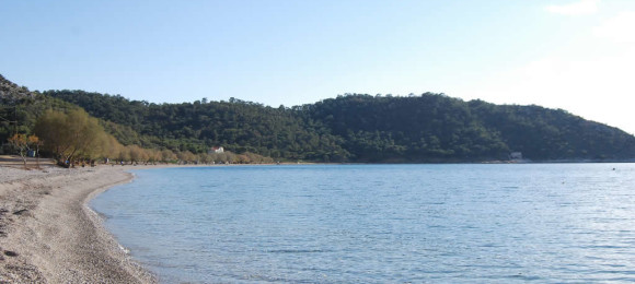 A remote yet organized beach. In order to reach it, you cross the beautiful forest at the region of Kanakia.
