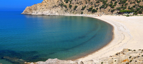 : A secluded sandy beach, surrounded by huge rocks, nudist friendly and accessible only by boat. In short, a slice of paradise. 10.0 : An endless beach with grey shingles, rocks and a truly fascinating landscape (as a result of volcanic activity). 9.0 : This pebbly, organized beach with cold waters, offers peaceful moments and fantastic views to the mountain. 8.0 : Popular, beautiful long seashore with crystalline light blue waters - the only sandy beach on the island. A few amenities are available here. 8.0 : Isolated, tranquil sandy cove, close to Pachia Ammos. You have to descend a steep path in order to reach it, but it’s worth the effort. 8.0