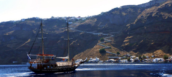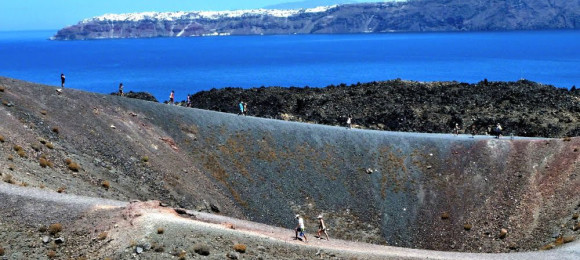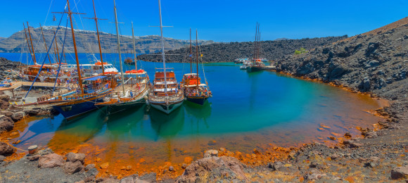 You can either take the boat tour along the caldera or choose one of the regular excursion trips that lead you to caldera islets Nea and Palaia Kameni, as well as Thirasia. Walk up towards the volcano crater in Nea Kameni (good shoes, sun block and water serve as survival tools here) and have a swim in the hot sulphur springs of Palaia Kameni. Last stop is Thirasia, an unspoiled miniature version of Santorini before the tourism invasion. Overall, a definite must-do.