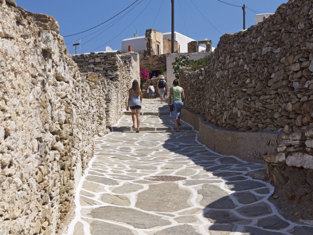 Chora, at the north, is one of the most beautiful in the Greek islands. It consists of two settlements – Kastro (castle) and Chorio (village). Kastro is built at the edge of the cliff: It is a 15th c fortified settlement with old mansions, stone houses, windmills and the landmark church of Pantanassa at the main square. It is also the island’s meeting point with lovely places to eat, drink and shop. Meanwhile, Chorio is a stylish restored settlement with a maze of narrow alleys, terraces, old houses and the Folklore Museum, housed in an old olive press. Traditional and relaxed, Sikinos addresses to visitors who wish to escape modernity and urban comforts. Once you decide to leave all this behind, this Greek island will surely reward you.