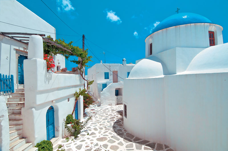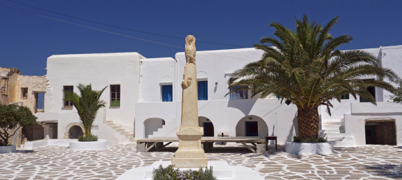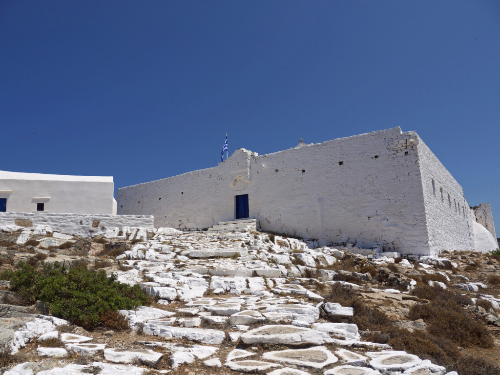 : Built in 1690 and closed in 1834, it is a restored fortified monastery that became the islanders’ prime refuge during the attacks of pirates. It is situated at the top of the hill above Chora and offers superb views. Nearby you can also visit Mavri Spilia, one of the largest in the Cyclades, which is accessible only by boat.
