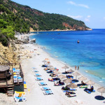 Lovely waters, sand and pebbles. It’s near the town and partly organized.