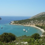 A small organized sandy beach, quite popular too, as it’s located at walking distance from the settlement of Gialos. Nudism is also tolerated here.